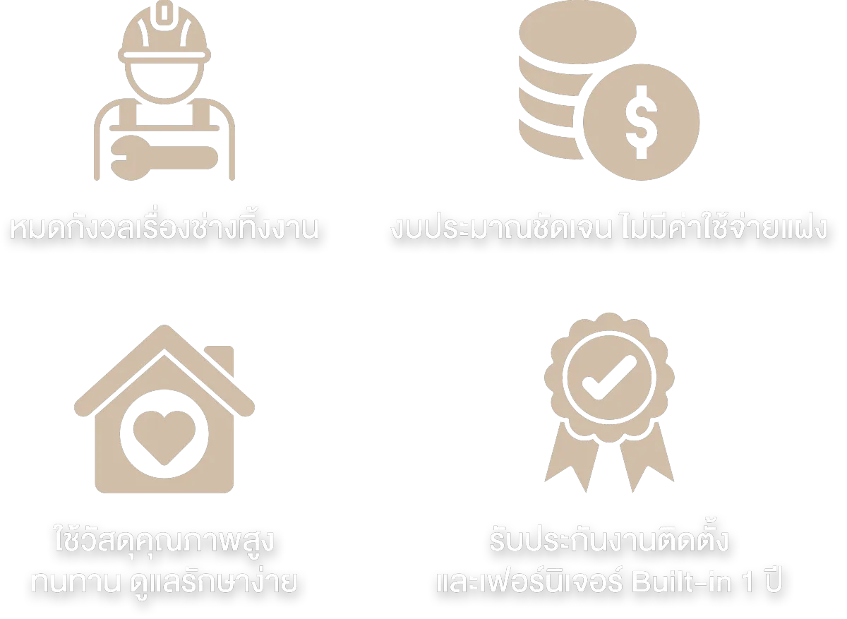 เรารับประกันงานติดตั้งและเฟอร์นิเจอร์บิลต์อินนาน 1 ปีเต็ม